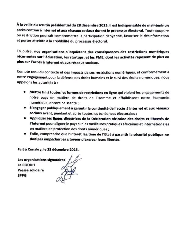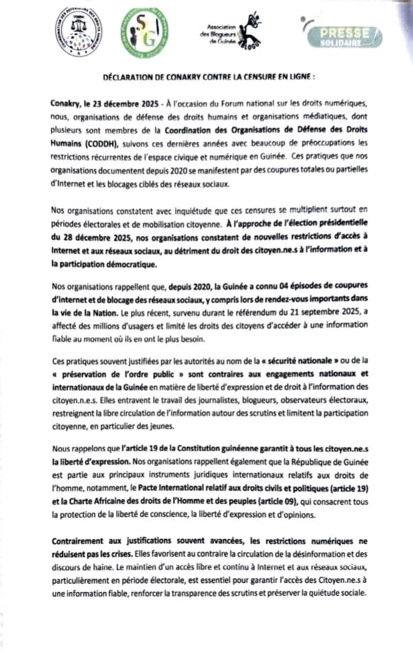 Guinée: des associations et syndicats dénoncent la nouvelle censure de l’internet