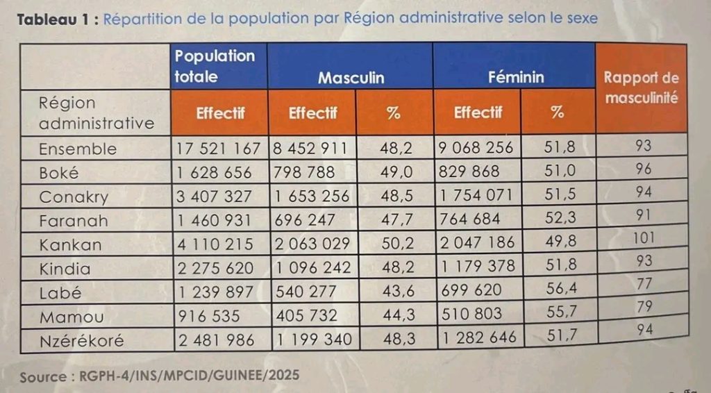 La Guinée a désormais 17 521 167 habitants, avec 51,8% de femmes ( RGPH-4)