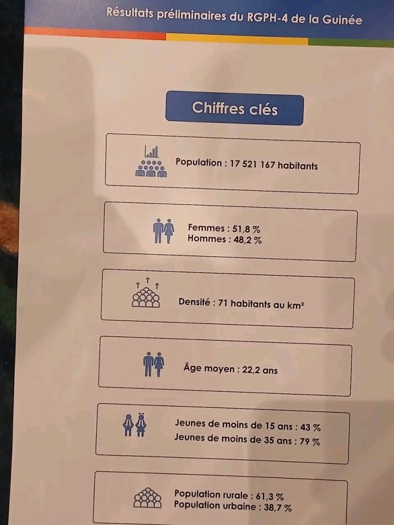 Ces résultats sont le fruit d’une vaste opération de recensement qui a permis de collecter des données précises sur la population guinéenne. Ils seront utilisés pour éclairer les décisions politiques et économiques du pays.