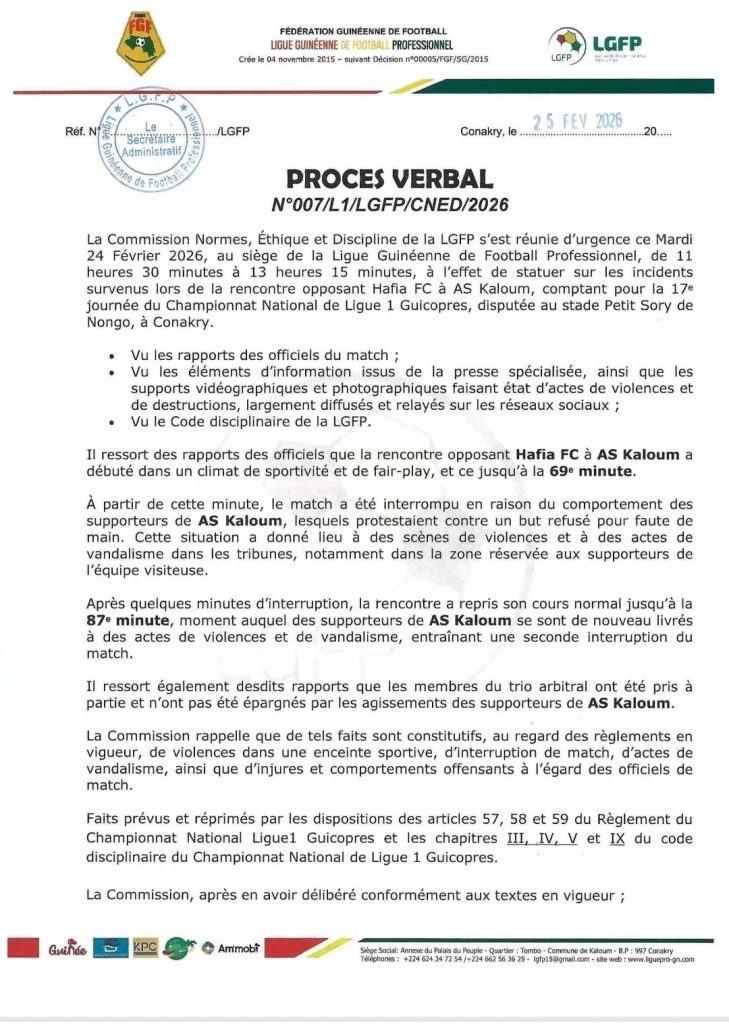 Vandalisme au stade Petit Sory de Nongo : la LGFP sanctionne sévèrement l’AS Kaloum
