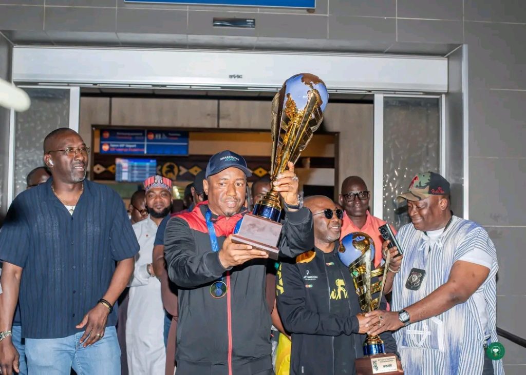 «Au lendemain de leur sacre en Bulgarie, les championnes du monde de l’IHF Trophy (U17 & U19) ont regagné le pays ce dimanche 12 avril 2026 à 21h50. À l’aéroport international Ahmed Sékou Touré de Conakry, le ministre de la Jeunesse et des Sports, accompagné de son cabinet, a accueilli nos jeunes championnes avec les deux trophées. Le ministre Cellou Baldé a exprimé la fierté de tout le gouvernement suite à cette performance historique réalisée par les handballeuses guinéennes. Le patron du département de la Jeunesse et des Sports a félicité tous les acteurs de ces résultats au nom du Président Mamadi Doumbouya. À leur sortie, parents, amis et supporters étaient mobilisés pour réserver un accueil chaleureux aux championnes du monde de l’IHF Trophy. Chacun voulait toucher les deux trophées remportés par la Guinée lors de la phase mondiale de la compétition», rapporte le service communication de la Fédération Guinéenne de Handball.