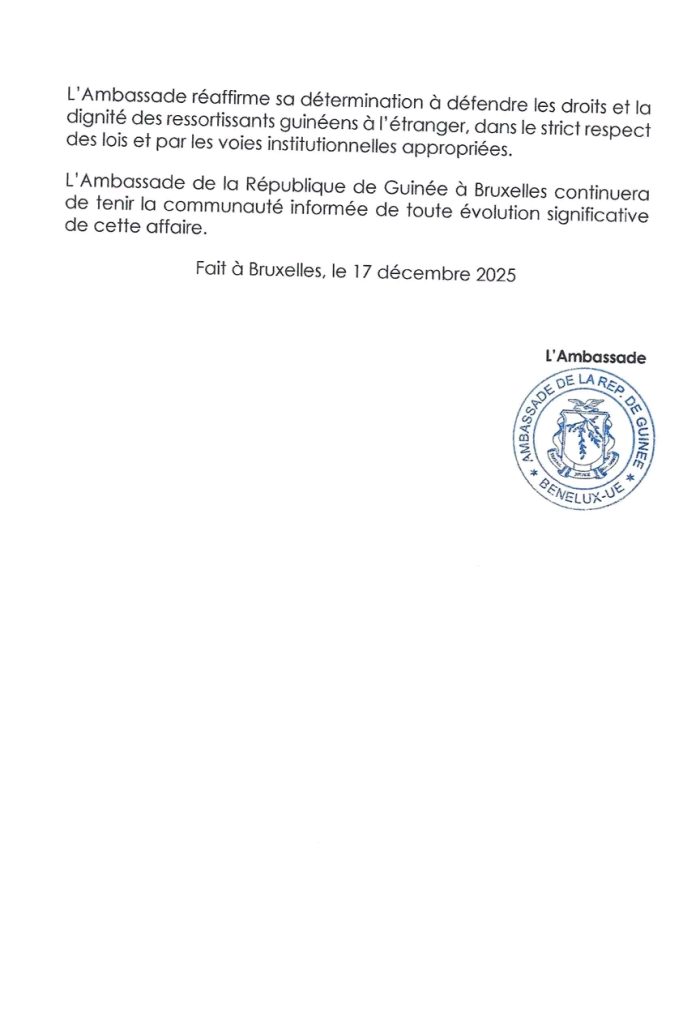 L’ambassade de la République de Guinée en Belgique sort enfin de son silence après les indignations suscitées autour de cet acte. La représentation diplomatique appelle au calme.